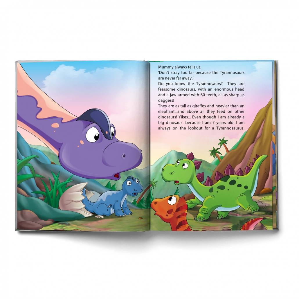 Votre enfant se retrouve dans le monde merveilleux du pays des dinosaures avec ses amis les Brachiosaures et Stégosaures pour une belle aventure.